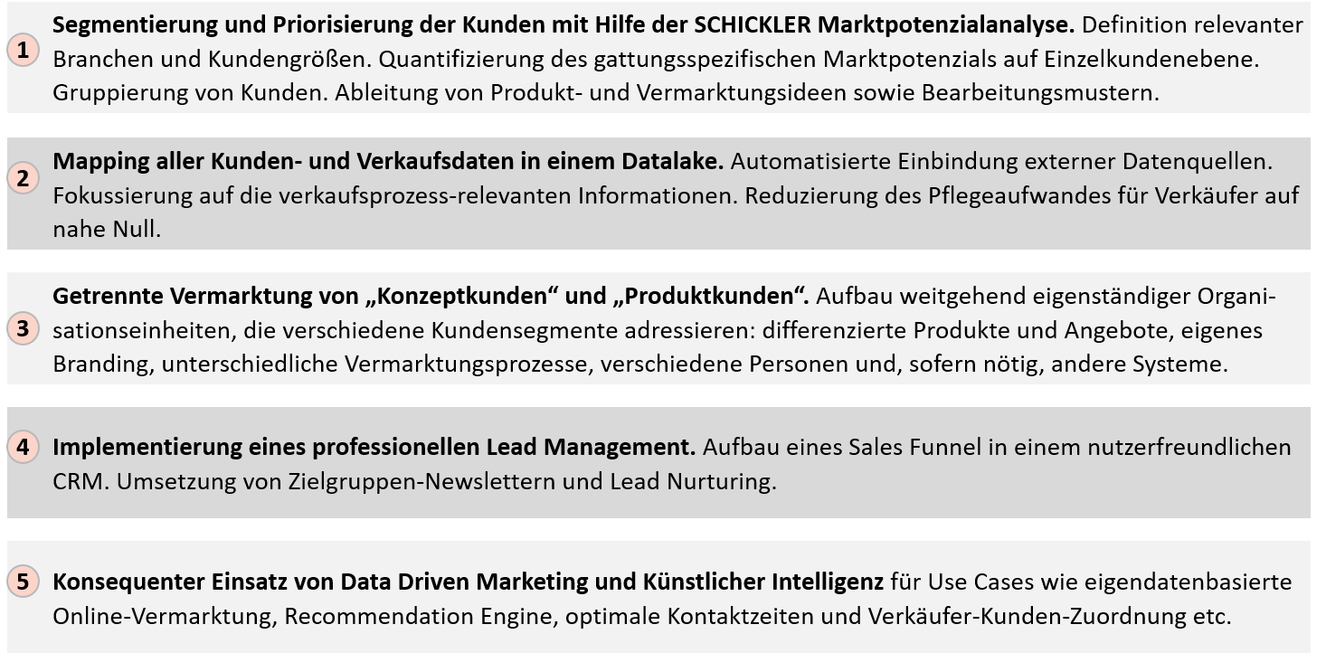 Erfolgreiche Vermarkter setzen auf ein 5-Punkte-Programm, um diesen Weg umzusetzen und im B2B-Segment wieder zu wachsen: