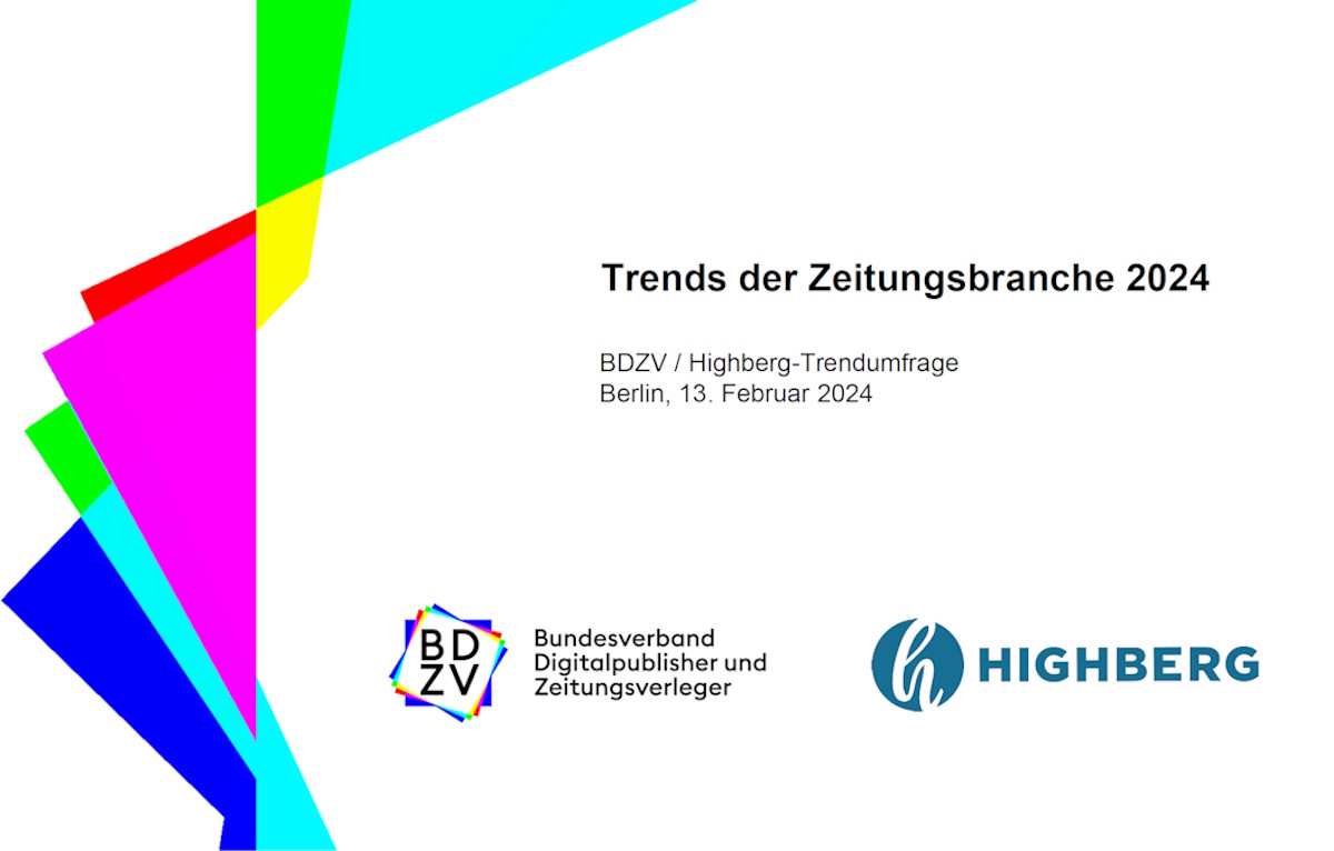 BDZV und Highberg präsentieren die Trends der Zeitungsbranche 2025 Die digitale Transformation der Verlagsbranche schreitet weiter voran. Dies zeigt die aktuelle Trendumfrage 2025 vom Bundesverband Digitalpublisher und Zeitungsverleger (BDZV) und dem Beratungsunternehmen Highberg. Die Studie, die zum elften Mal durchgeführt wurde, bietet einen umfassenden Einblick in die zentralen Entwicklungen und Herausforderungen der Zeitungs- und Digitalverlage [...]